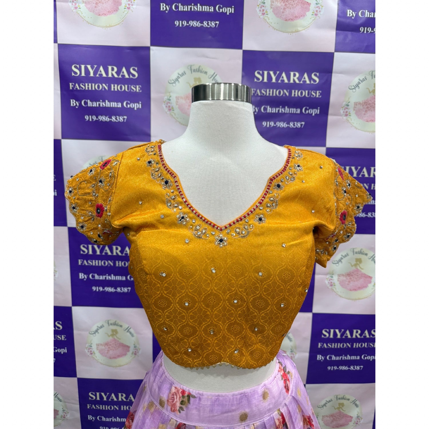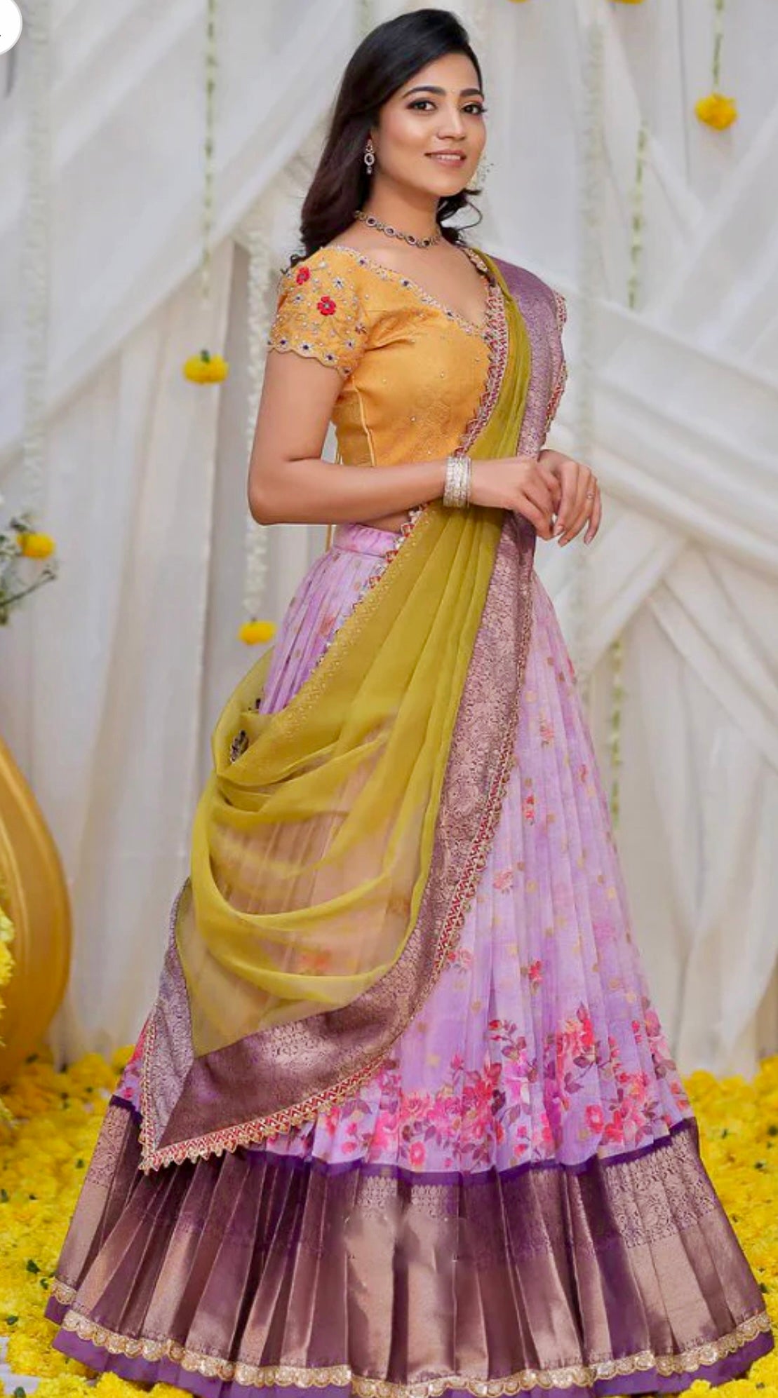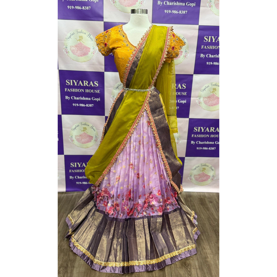 Lavender & Yellow Neutral Pattu Lehenga | Festive Wear | Handwork Blouse | Organza Dupatta with Zarkhan Lace XXL Size 44