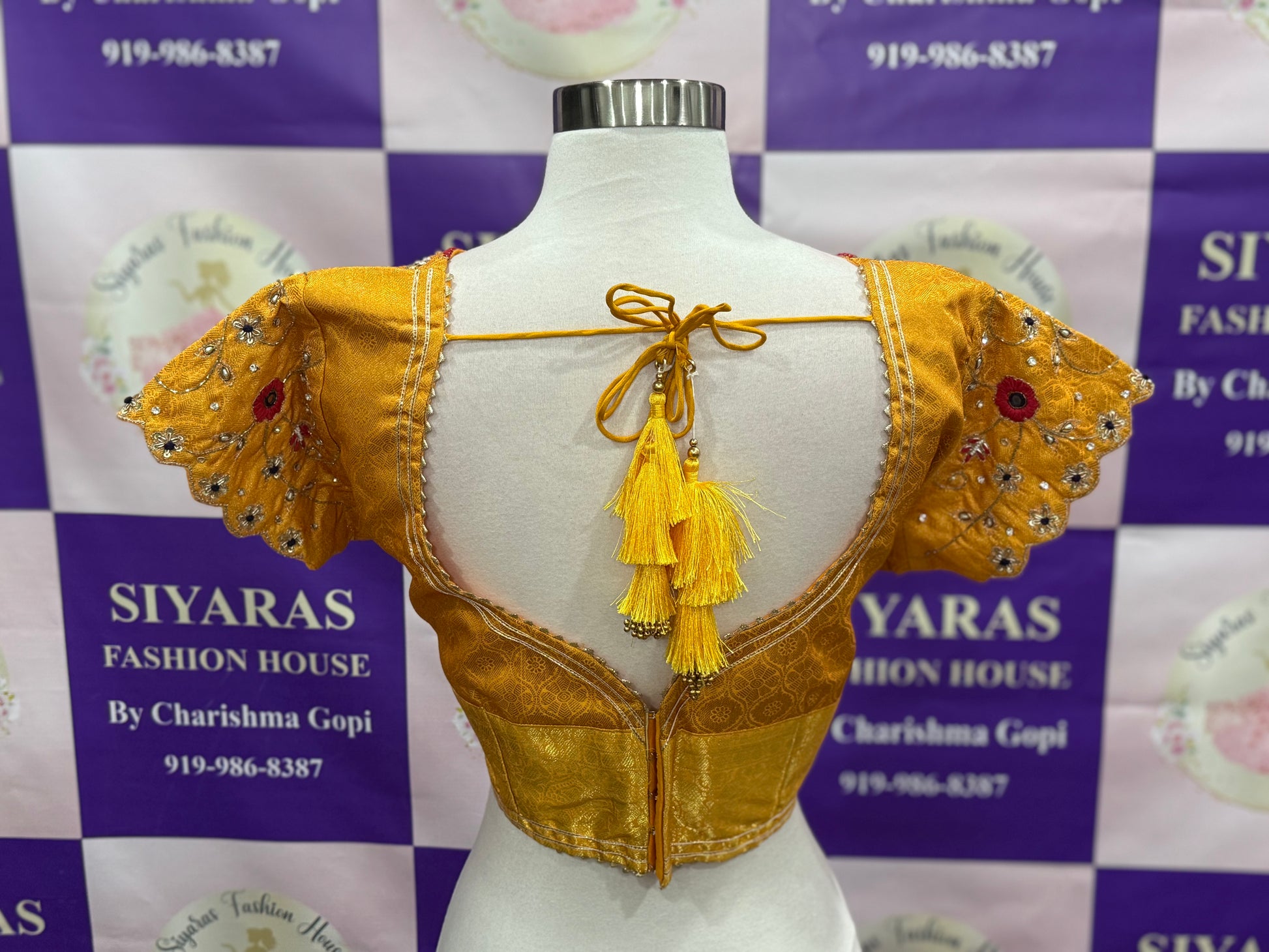 Bananas pattu Lehanga Half saree with Maggam work blouse and organza dupatta size 44 ready to ship USA.