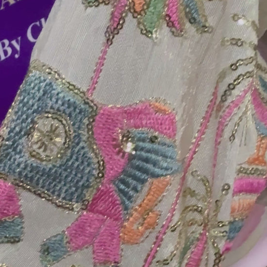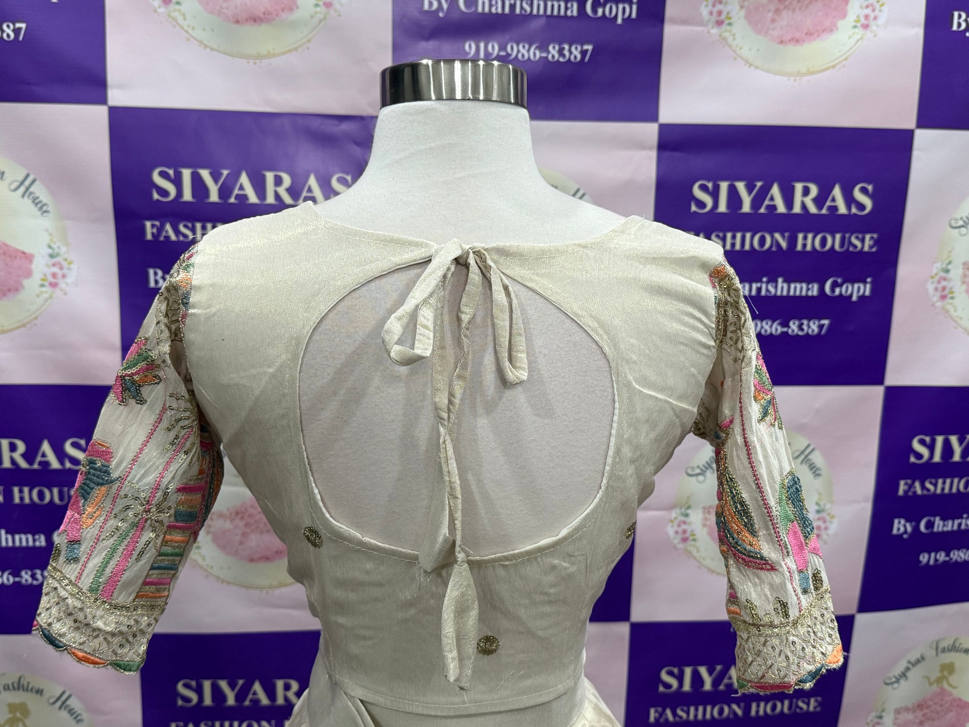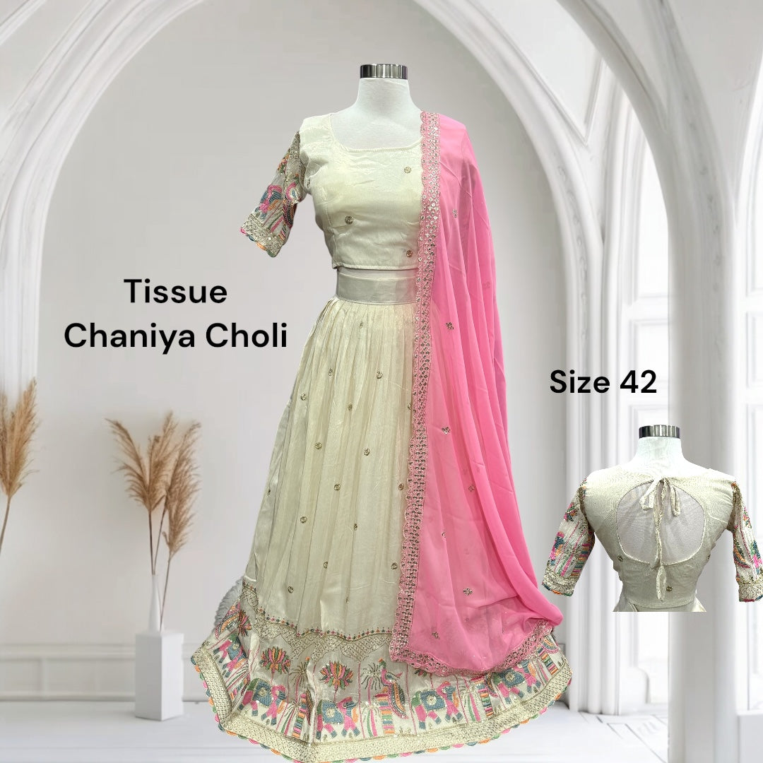 Elegant Off White Banarasi Tissue Silk Wedding Lehenga Choli – Heavy Embroidery & Sequin Work – Size Large 40 , chaniya choli, ready to ship usa