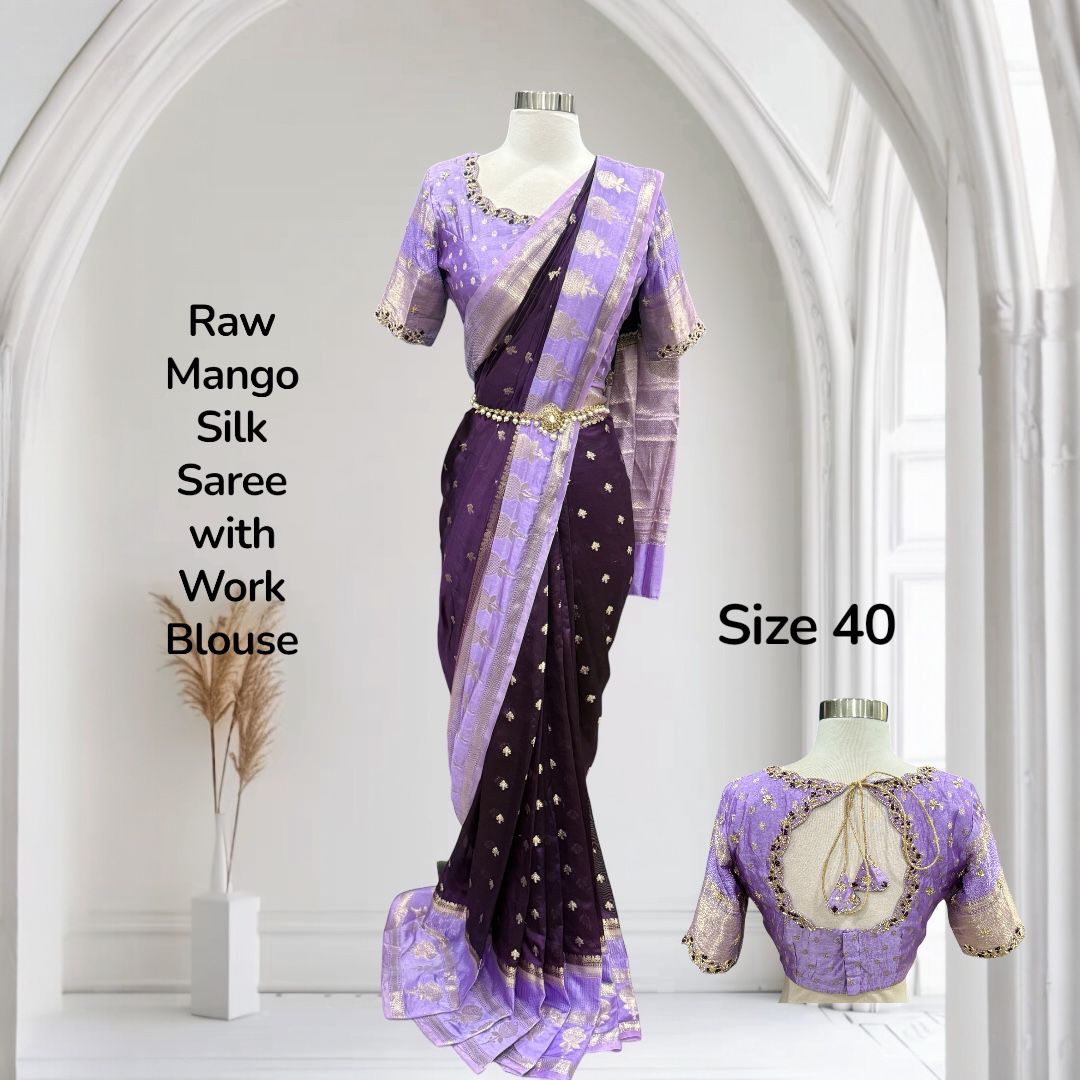 Gorgeous raw mango silk Saree with elegant Maggam work stiched blouse size 38 -42 ready to ship wedding reception