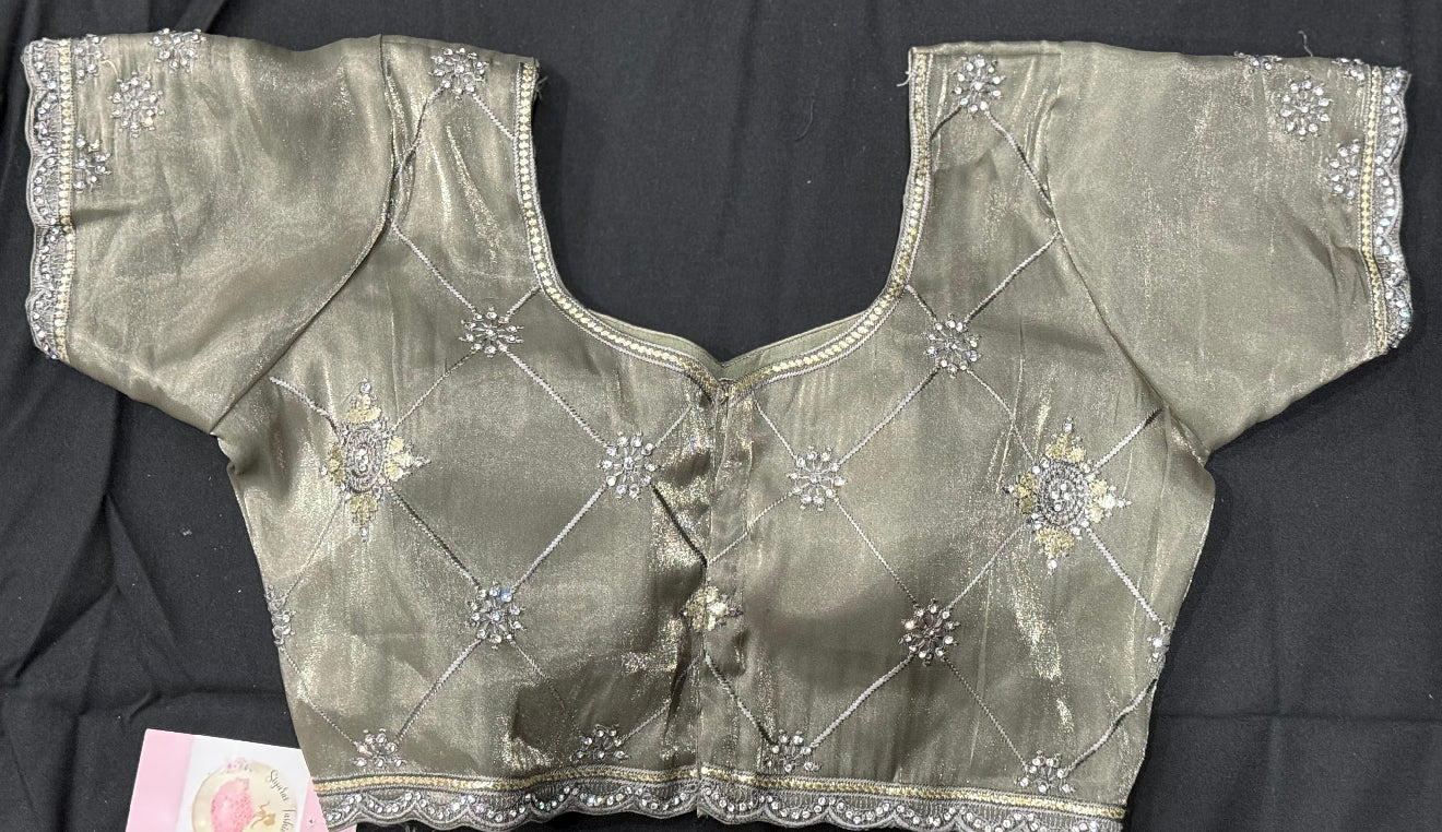 Comes with matching satin inner skirt , Blouse fits 38-42.