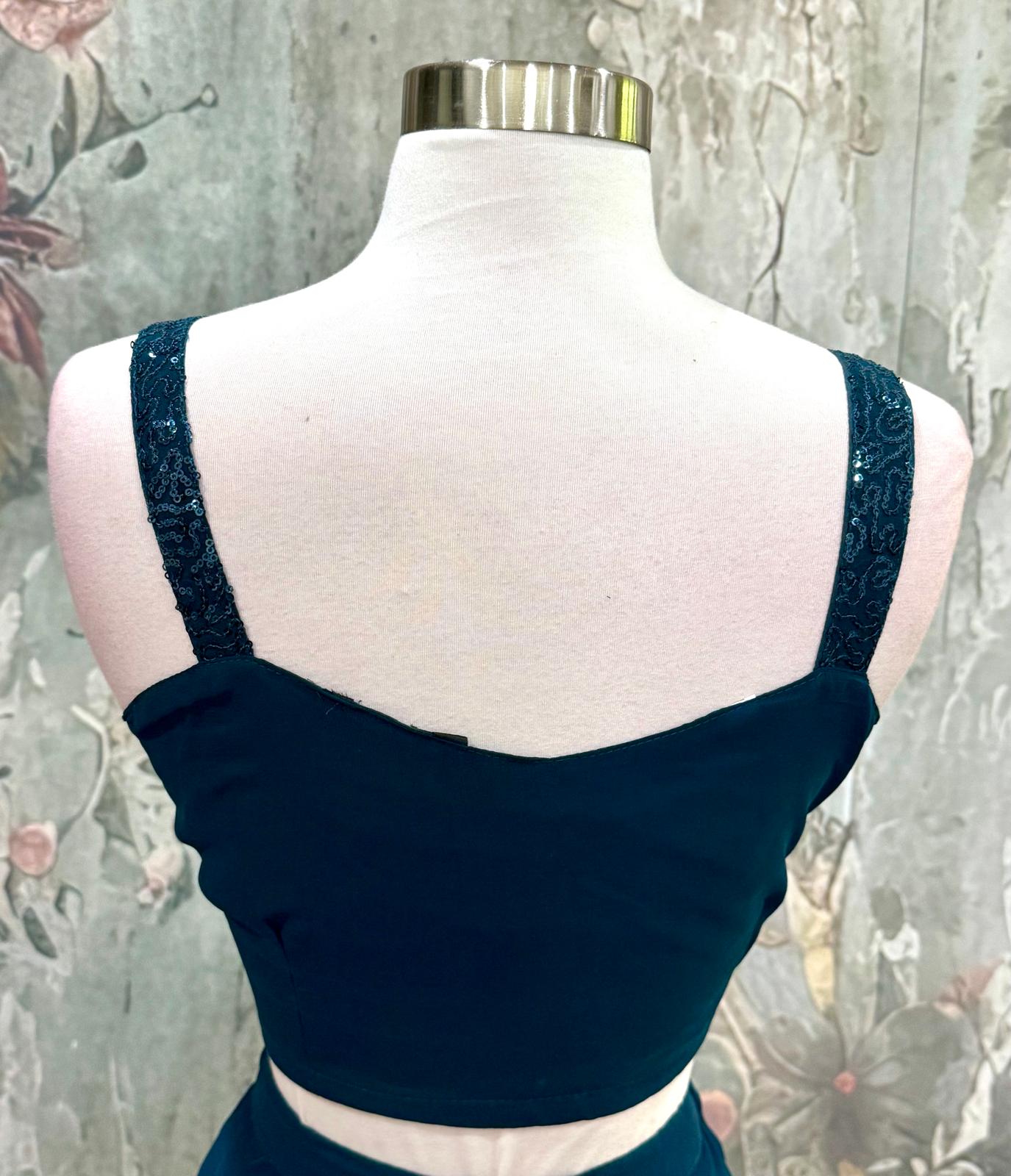 Beautiful Drape style lehenga in teal blue color. Available in size 34/36.