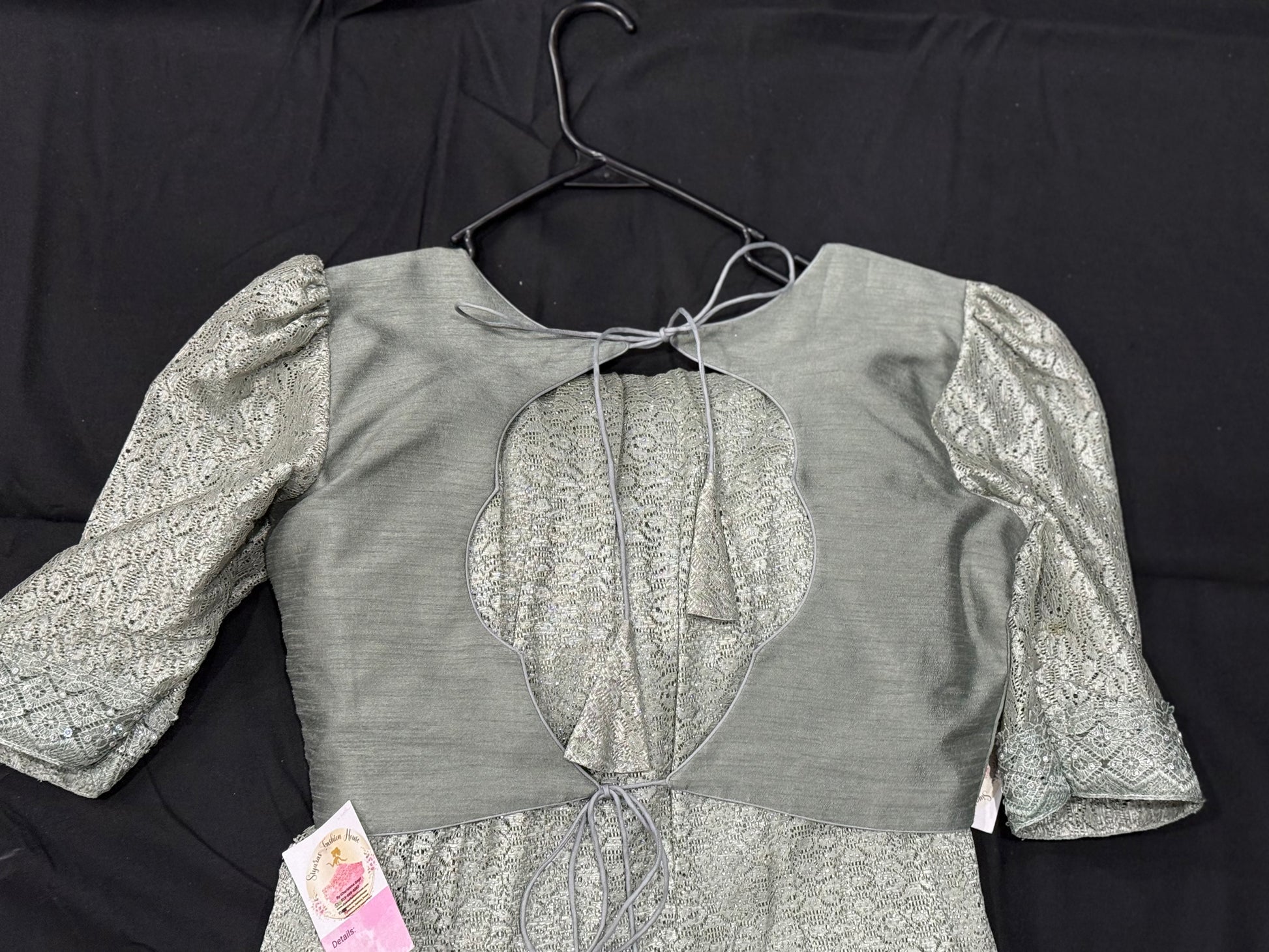 Beautiful pastel green partywear shimmering saree stitched blouse stone and lace wedding reception cocktail partywear saree size 38 to 42.