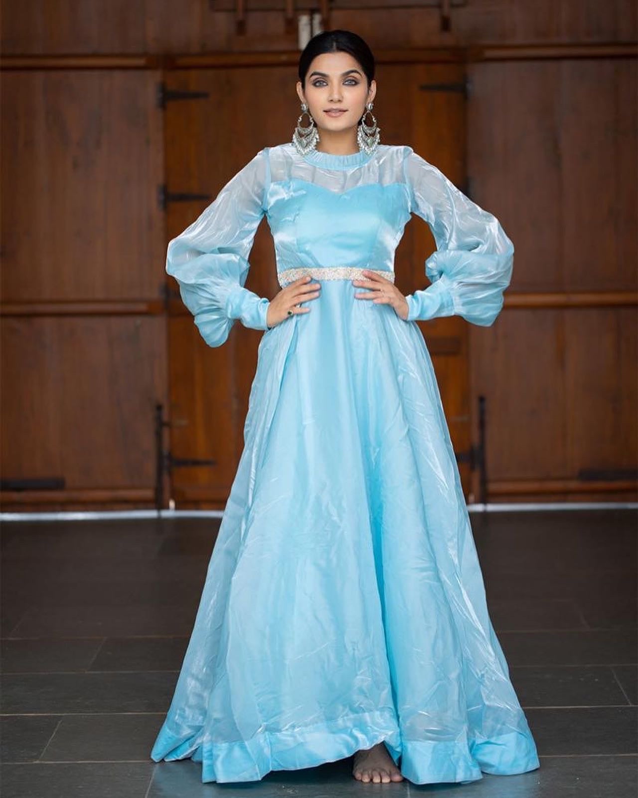 Best excuse to spruce up the Fashion Game with this trendy Long Gown in sky blue color.