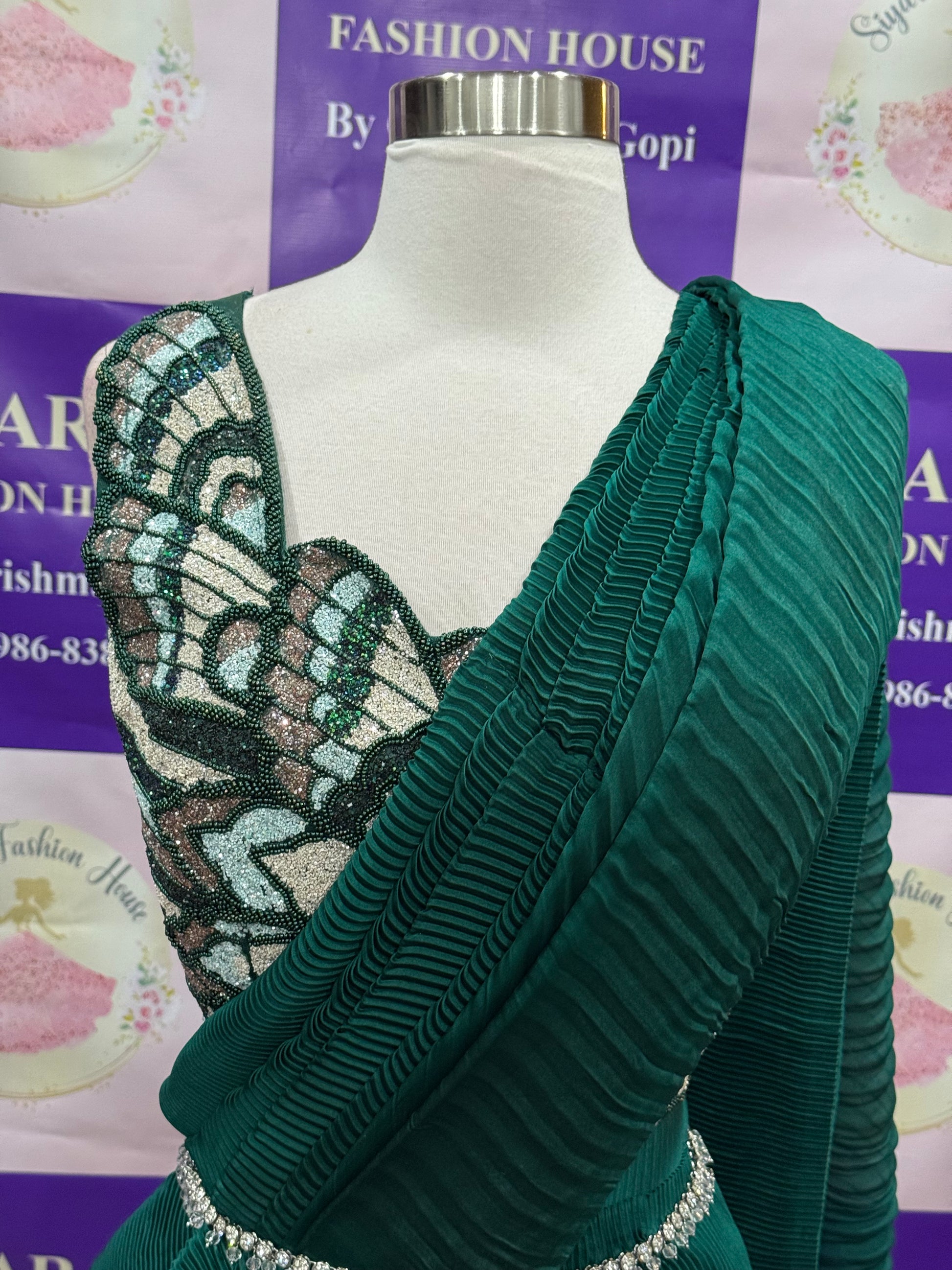 Gorgeous Indowestern Ready to wear one min Saree BUTTERFLY DESIGN stitched Trendy blouse 36 ready to ship USA