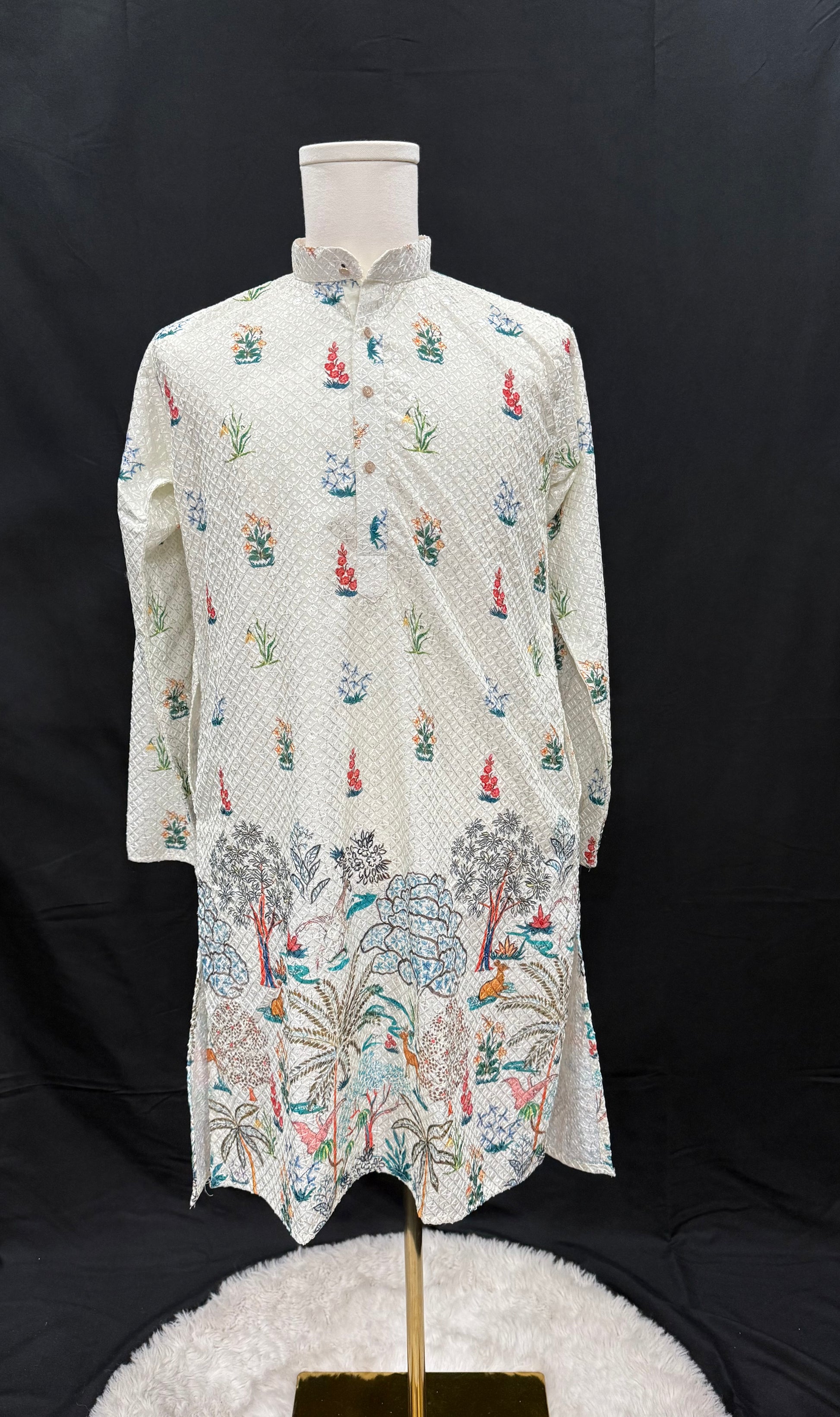 Mens Kalamkari print sequins Chikankari kurta and Pyjama perfect partywear, festival and wedding wear. Available in size 36,38,40,42 and 44