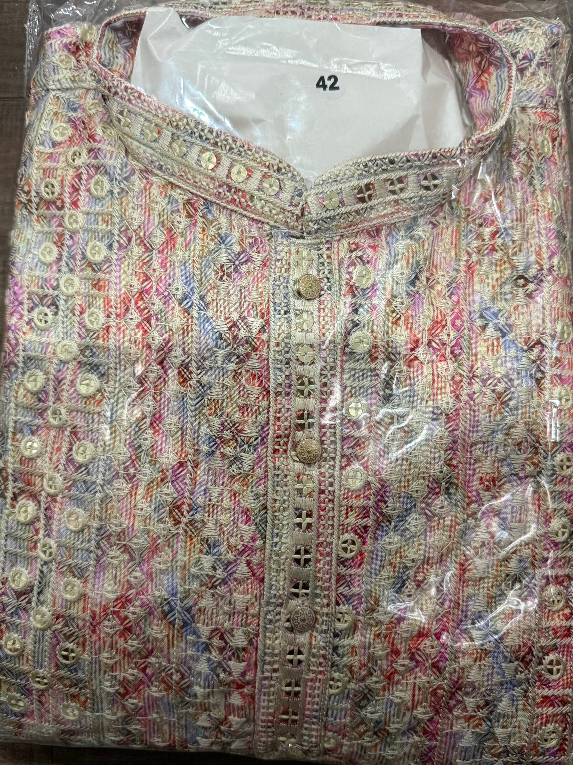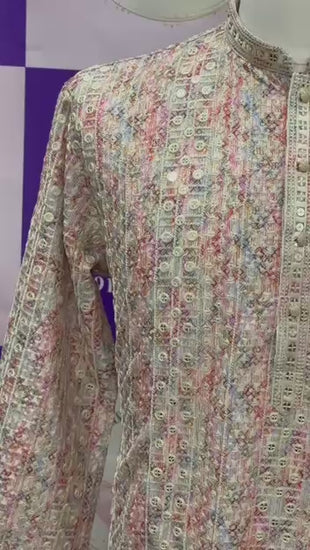 Step into elegance this festive season with our Men’s Kurta Pyjama Set 👌🪔. This stunning kurta features a multi-tone sequin design that shines beautifully under light, paired with white pants for a royal & classy look 🤵🎉. The kurta is finished with premium quality elegant buttons, making it the perfect outfit for weddings, Diwali parties, and festive gatherings 🎊🕺. Kurta length 40inch.
